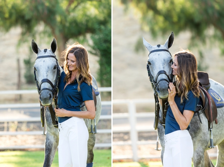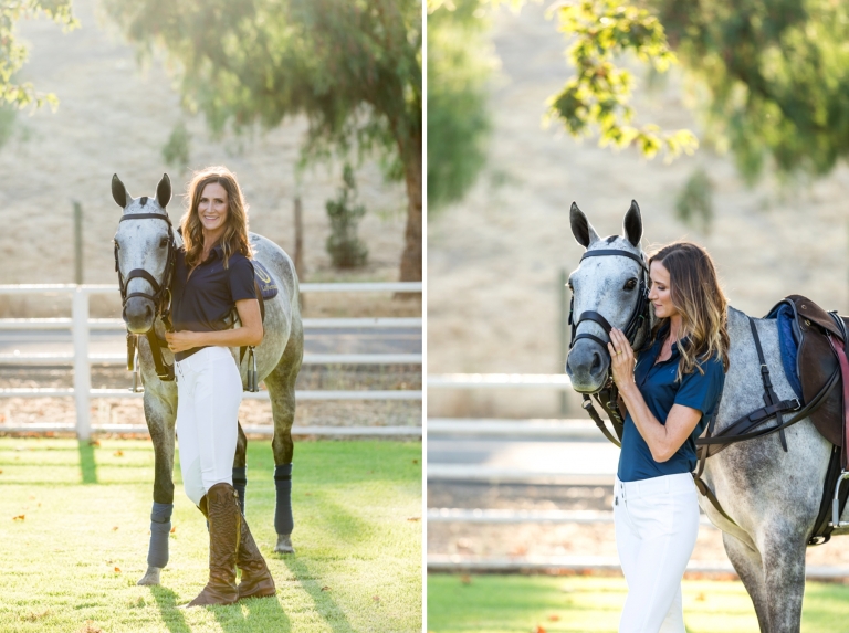 This Santa Ynez Polo pony session with Meghan Gracida took place at the stunning Piocho Ranch in Happy Canyon Vineyards on a beautiful glowing evening. Meghan decided to use her two main polo mounts Petito Feo and Sampson. Loosely translated, Petito Feo means “ugly duckling” in Spanish. I think we can all agree that the grey beauty featured below is anything but ugly. He was given the name as an awkward foal and was assumed “not athletic enough” to be a future polo pony. Luckily he met Meghan a few short years later. Meghan Gracida learned to play polo from her husband; world renowned polo player Memo Gracida.