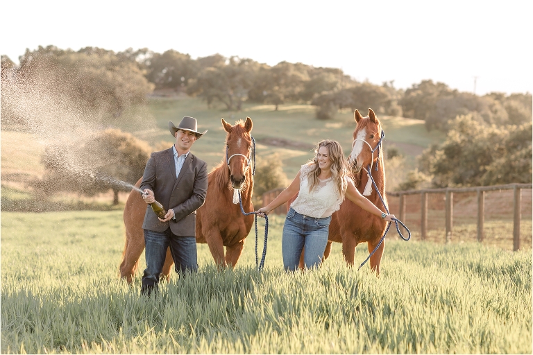 This Western Engagement session with Taylor and Aaron in Nipomo, California was so fun. Clearly, one must pop champagne with young horses to truly live. Therefore, we did just that. All the same, the horses handled it pretty well.